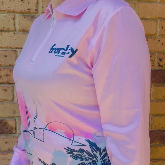 Step into paradise every time you wear the Island Dream. Inspired by soft pink sunsets, palm silhouettes, and the freedom of the sea, this shirt is proof that fishing gear can be stylish, feminine, and functional all at once.